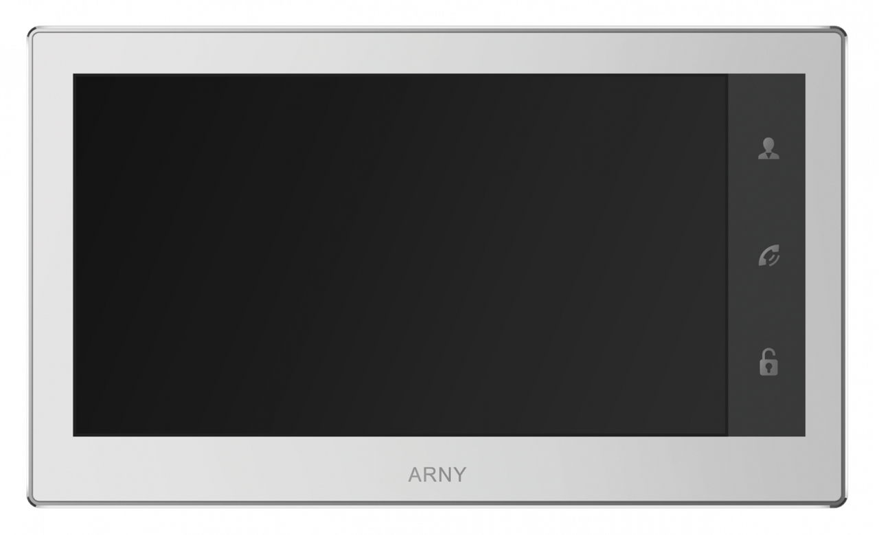 ARNY AVD-740 2MPX — відеодомофон обладнаний сенсорним семидюймовим екраном із роздільною здатністю 1024х600 і може підтримувати відеокамери с Full HD / HD роздільною здатністю (1080p/720p).